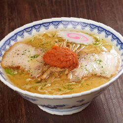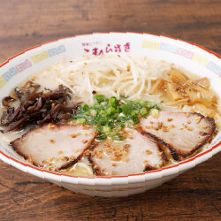 Founded in 1954, the soup at this historic ramen shop serves a mild-flavored sauce that combines chicken bone and vegetable broth over a tonkotsu (pork bone) base. The soup includes their own specially-flavored oil, and roasted, crumbled garlic chips scattered on top; the fragrance of which really piques your appetite.
