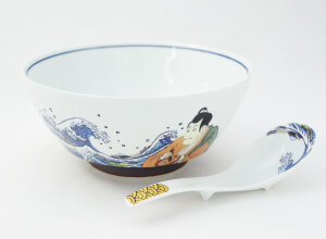 「家庭でインスタントラーメンをおいしく食べるための器」をコンセプトに、試行錯誤、苦難の末に完成したまさに「究極」のフォルム。ラー博オリジナルの絵付が施されたプレミアム商品です。