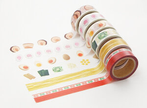 ラーメンの具材や麺がプリントされたマスキングテープ。具材のテープは小さくカットしてトッピングをお楽しみください。