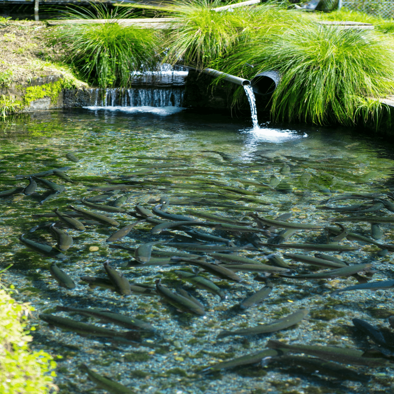 そして、みやまが魚を育む水が、八ヶ岳南麓・標高約1,100mの地で、100年以上前から湧き続けていると言われる「越水湧水」。一年を通して水温はおよそ11℃前後。季節に揺らがないその水が、魚の身を健康的に引き締め、余計な緩みを持たせず、旨味を内側へ凝縮させます。