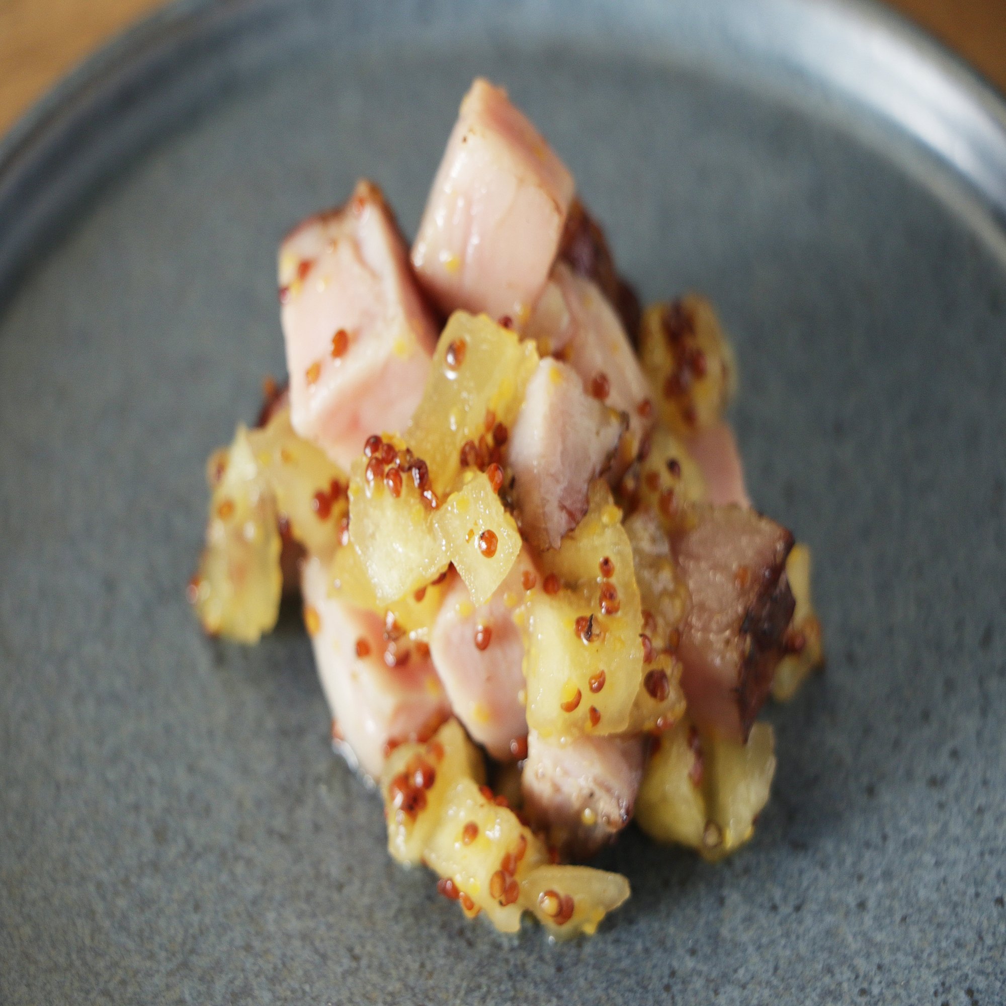 ◎甲州富士桜ポークと北杜市産りんごのマスタードソース和え