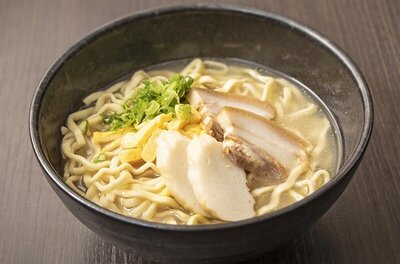 スープはシンプルながら沖縄の食文化がふんだんに込められています。その食文化とは、豚、鰹節、昆布、きびなごの煮干しといったシンプルなものです。